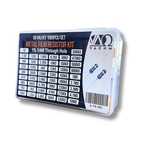 50 tipos 1000 piezas Dip Metal Film Resistor Set